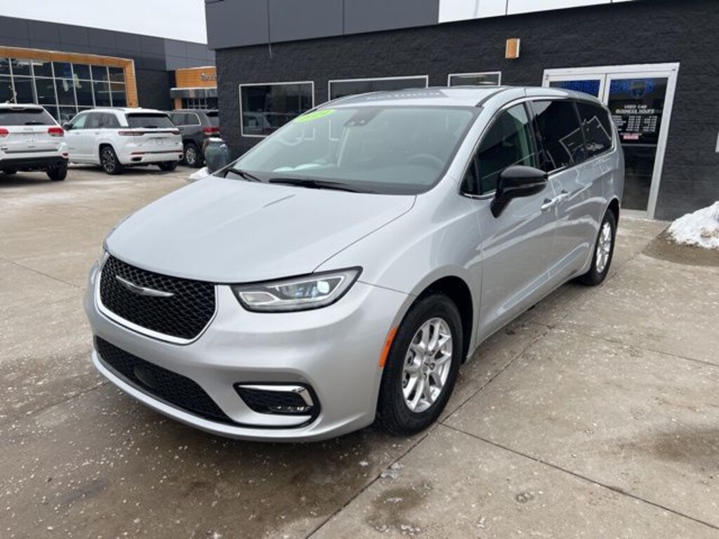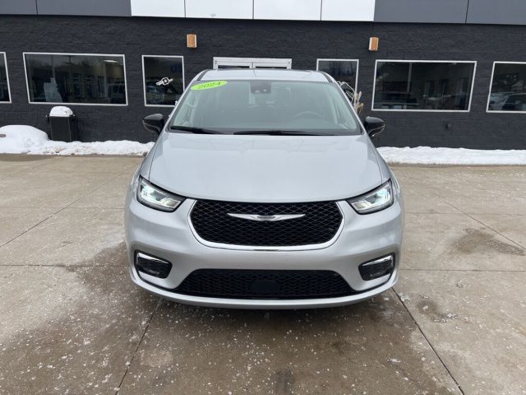*NO NEED TO LEAVE YOUR HOME OR BUSINESS!! SZOTT DELIVERS!!!. CARFAX One-Owner. 2024 Silver Mist Clearcoat Chrysler Certified. FWD Pacifica Touring L 9-Speed 948TE Automatic With some available options like Quick Order Package 27L, 10.1" Touchscreen Display, 17" x 7.0" Aluminum Wheels, 3.25 Axle Ratio, 3rd row seats: split-bench, 4-Wheel Disc Brakes, 6 Speakers, ABS brakes, Air Conditioning, Alloy wheels, AM/FM radio: SiriusXM, Apple CarPlay, Apple CarPlay/Android Auto, Automatic temperature control, Black Seats, Brake assist, Bumpers: body-color, Caprice Leatherette Bucket Seats, Compass, Delay-off headlights, Disassociated Touchscreen Display, Driver door bin, Driver vanity mirror, Driver's Seat Mounted Armrest, Dual front impact airbags, Dual front side impact airbags, Electronic Stability Control, Four wheel independent suspension, Front anti-roll bar, Front Bucket Seats, Front dual zone A/C, Front fog lights, Front reading lights, Fully automatic headlights, Google Android Auto, GPS Antenna Input, Heated door mirrors, Heated front seats, Heated steering wheel, Illuminated entry, Integrated Active Noise Cancellation, Integrated Center Stack Radio, Knee airbag, Low tire pressure warning, Manufacturer's Statement of Origin, Memory seat, Occupant sensing airbag, Outside temperature display, Overhead airbag, Overhead console, Panic alarm, ParkView Rear Back-Up Camera, Passenger door bin, Passenger seat mounted armrest, Passenger vanity mirror, Power door mirrors, Power driver seat, Power Liftgate, Power steering, Power windows, Radio data system, Radio: Uconnect 5 w/10.1" Display, Rain sensing wipers, Rear air conditioning, Rear reading lights, Rear window defroster, Rear window wiper, Reclining 3rd row seat, Remote keyless entry, Security system, Speed control, Split folding rear seat, Spoiler, Steering wheel mounted audio controls, Tachometer, Telescoping steering wheel, Tilt steering wheel, Touring Suspension, Traction control, Trip computer, Turn signal indicator mirrors, USB Host Flip, Variably intermittent wipers, and Voltmeter.