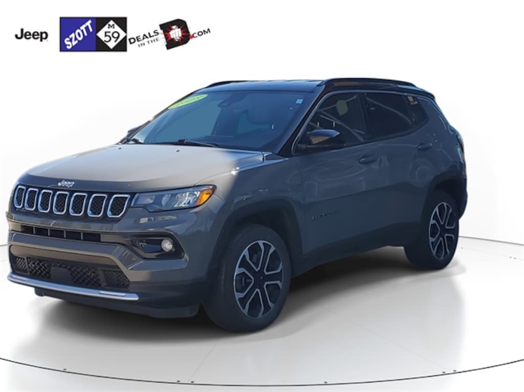*NO NEED TO LEAVE YOUR HOME OR BUSINESS!! SZOTT DELIVERS!!!, *TOUCH SCREEN RADIO*, *BLUETOOTH, HANDS-FREE*, *USB/AUX INPUTS; play music from your phone*, Backup Camera, Heated Seats, Keyless Entry, Multi-zone Climate Control, Steering Wheel Controls, 4 Wheel Drive, Android Auto, Apple CarPlay. CARFAX One-Owner. 2023 Sting-Gray Clearcoat Jeep Certified. 4WD Compass Limited 8-Speed Automatic