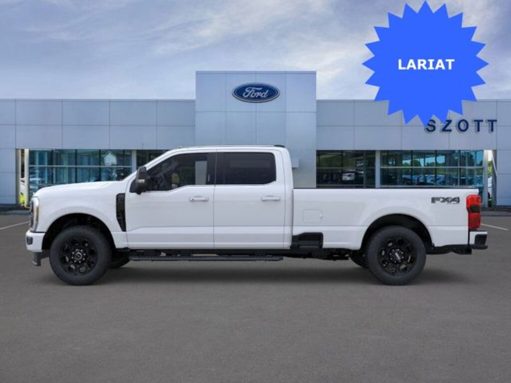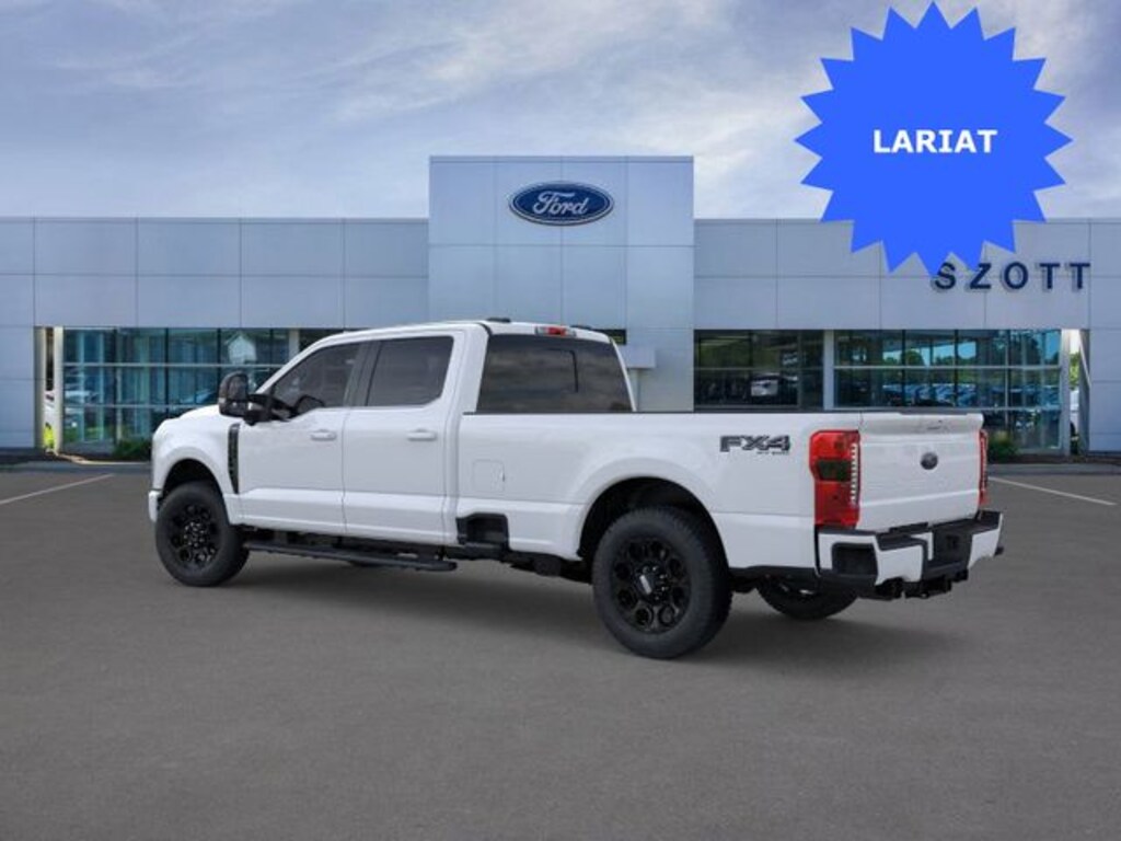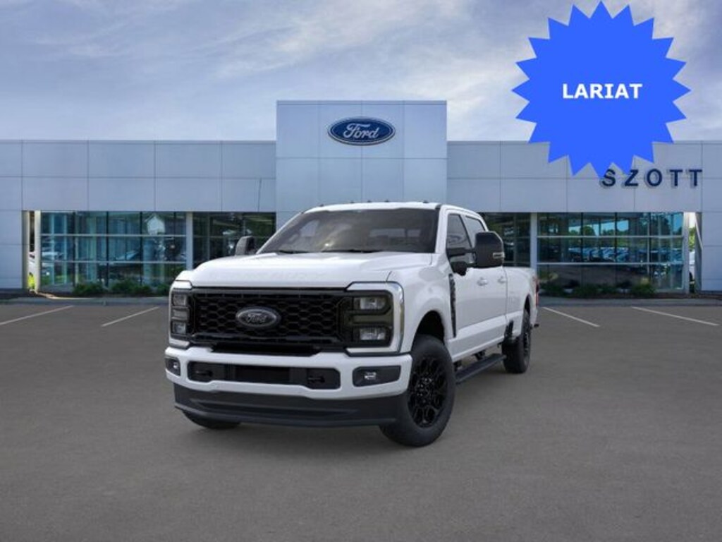 With some available options like 5th Wheel/Gooseneck Hitch Prep Package, Black Appearance Package (6" Ebony Black Angular Running Boards, Black Painted Front Grille Surround, Body Color Front and Rear Bumpers, and Ebony Black Painted Mirror Caps), Ford Connectivity Package (1-Year Included), FX4 Off-Road Package (Hill Descent Control, Off-Road Specifically Tuned Shock Absorbers, and Unique FX4 Off-Road Box Decal), Internet access capable: 5G Modem - Ford Connectivity Package, Lariat Premium Package (Power-Sliding Rear-Window with Defrost, Privacy Glass, Pro Trailer Backup Assist, and Pro Trailer Hitch Assist), Order Code 618A (Flow-Through Console, Front ActiveX Trimmed 40/Console/40 Seats, Radio: B&O Sound System by Bang and Olufsen, SiriusXM with 360L, SYNC 4 with Enhanced Voice Recognition, and Wheels: 18" Bright Machined and Carbonized Gray Aluminum), Snow Plow Prep Package, 4WD, 190 Amp Alternator, 4-Wheel Disc Brakes, 410 Amp Dual Alternators, 8 Speakers, ABS brakes, Adaptive Cruise Control with Stop-and-Go, Adjustable pedals, Air Conditioning, All-Weather Floor Mats, Alloy wheels, AM/FM radio: SiriusXM with 360L, Auto High-beam Headlights, Auto-dimming Rear-View mirror, Automatic High Beam, Automatic temperature control, BLIS with Cross-Traffic Alert, Brake assist, Bumpers: chrome, Compass, Delay-off headlights, Driver door bin, Driver vanity mirror, Dual AGM 68 AH Battery, Dual front impact airbags, Dual front side impact airbags, Electronic Stability Control, Emergency communication system: SYNC 4 911 Assist, Front and Rear Parking Sensors, Front anti-roll bar, Front Bucket Seats, Front Center Armrest, Front dual zone A/C, Front fog lights, Front reading lights, Fully automatic headlights, Garage door transmitter, Heated door mirrors, Heated front seats, Heated rear seats, Heated steering wheel, Illuminated entry, Lane-Keeping System, LED Roof Clearance Lights, Low tire pressure warning, Memory seat, Navigation system: Connected Navigation, Outside temperature display, Overhead airbag, Overhead console, Panic alarm, Passenger door bin, Passenger vanity mirror, Pedal memory, Post-Collision Braking, Power door mirrors, Power driver seat, Power passenger seat, Power steering, Power windows, Pre-Collision Assist, Rain sensing wipers, Rear Parking Sensors, Rear reading lights, Rear seat center armrest, Rear step bumper, Rear window defroster, Remote keyless entry, SecuriCode Keyless Entry Keypad (driver's Side), Security system, Speed control, Split folding rear seat, Steering wheel mounted audio controls, Tachometer, Tailgate Step and Handle, Telescoping steering wheel, Tilt steering wheel, Traction control, Trip computer, Turn signal indicator mirrors, Upfitter Switches (6), Variably intermittent wipers, and Ventilated front seats Prices may not included Dealer added accessories.