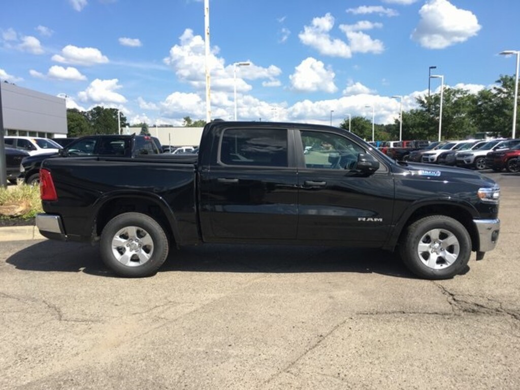 2025 Ram 1500 Big Horn/Lone Star Diamond Black Crystal Pearlcoat Big Horn Level 1 Equipment Group (115V Auxiliary Power Outlet, 2nd Row In Floor Storage Bins, 400W Inverter, Auto Power-Folding Mirrors, Auto-Dimming Exterior Driver Mirror, Auto-Dimming Rear-View Mirror, Black Exterior Mirrors, Black Premium Power Mirrors, Convex Wide-Angle Exterior Mirror Insert, Exterior Mirrors Courtesy Lamps, Exterior Mirrors w/Heating Element, Exterior Mirrors w/Supplemental Signals, Glove Box Lamp, Heated Front Seats, Heated Steering Wheel, Leather Wrapped Steering Wheel, Power 2-Way Driver Lumbar Adjust, Power Adjust 8-Way Driver Seat, Power Adjustable Pedals, Rear Power Sliding Window, Rear Window Defroster, Steering Wheel Mounted Audio Controls, Sun Visors w/Illuminated Vanity Mirrors, and Universal Garage Door Opener), Quick Order Package 23Z Big Horn (Big Horn Badge), 3 Rear Seat Head Restraints, 3.21 Rear Axle Ratio, 4 Way Front Headrests, 4-Wheel Disc Brakes, 4G LTE Wi-Fi Hot Spot, 6 Speakers, ABS brakes, Air Conditioning, Alloy wheels, AM/FM radio, Apple CarPlay/Android Auto, Auto High-beam Headlights, Brake assist, Bumpers: chrome, Cloth Bench Seat, Compass, Connectivity - US/Canada, Delay-off headlights, Driver door bin, Dual front impact airbags, Dual front side impact airbags, Electronic Stability Control, Front anti-roll bar, Front Center Armrest w/Storage, Front fog lights, Front reading lights, Front Seat Back Map Pockets, Front wheel independent suspension, Fully automatic headlights, GPS Antenna Input, Heated door mirrors, Illuminated entry, Integrated Voice Command w/Bluetooth, Low tire pressure warning, Manual Adjust 4-Way Front Passenger Seat, Manual Folding Exterior Mirrors, MOPAR Front & Rear Rubber Floor Mats, Occupant sensing airbag, Outside temperature display, Overhead airbag, Overhead console, Panic alarm, ParkView Rear Back-Up Camera, Passenger door bin, Passenger vanity mirror, Power door mirrors, Power steering, Power windows, Radio data system, Radio: Uconnect 5 W w/8.4" Display, RAM Grille Badge - Chrome, Rear 60/40 Folding Seat, Rear anti-roll bar, Rear seat center armrest, Rear step bumper, Remote keyless entry, Speed control, Split folding rear seat, Supplier Part Tracking (J-1), Tachometer, Telescoping steering wheel, Tilt steering wheel, Traction control, Trip computer, USB Host Flip, Variably intermittent wipers, Voltmeter, and Wheels: 18" x 8" Cast-Aluminum Painted.