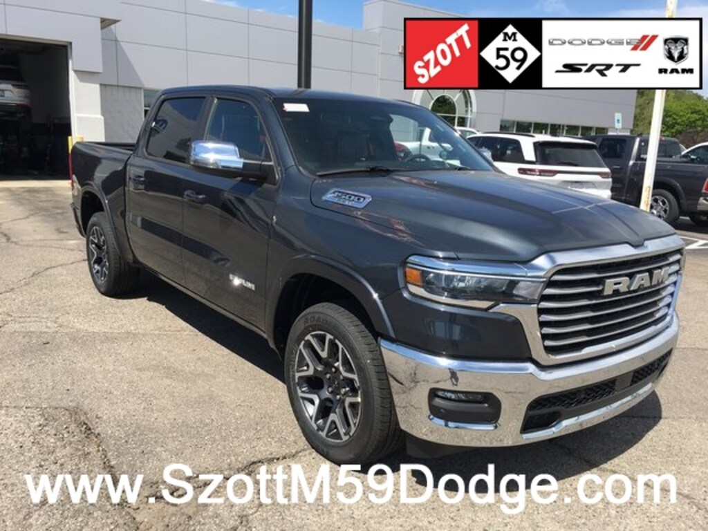 $19,403 off MSRP! $13,025 below Invoice! 2025 Ram 1500 Laramie Forged Blue Metallic Priced below KBB Fair Purchase Price! Laramie Level 1 Equipment Group (Rain Sensitive Windshield Wipers and Remote Tailgate Release), Quick Order Package 21H Laramie, 10 Speakers, 3 Rear Seat Head Restraints, 3.55 Rear Axle Ratio, 4 Way Front Headrests, 4-Wheel Disc Brakes, 4G LTE Wi-Fi Hot Spot, ABS brakes, Air Conditioning, Alloy wheels, AM/FM radio: SiriusXM with 360L, Apple CarPlay, Apple CarPlay/Android Auto, Audio memory, Auto High-beam Headlights, Auto Power-Folding Mirrors, Auto-dimming door mirrors, Auto-Dimming Exterior Driver Mirror, Auto-dimming Rear-View mirror, Automatic temperature control, Brake assist, Bumpers: chrome, Chrome Exterior Mirrors, Compass, Connected Travel & Traffic Services, Connectivity - US/Canada, Convex Wide-Angle Exterior Mirror Insert, Delay-off headlights, Driver door bin, Driver Seat Memory, Driver vanity mirror, Dual front impact airbags, Dual front side impact airbags, Electronic Stability Control, Exterior Mirrors Courtesy Lamps, Exterior Mirrors w/Heating Element, Exterior Mirrors w/Memory, Exterior Mirrors w/Supplemental Signals, Front anti-roll bar, Front Center Armrest w/Storage, Front dual zone A/C, Front fog lights, Front reading lights, Front Seat Back Map Pockets, Front wheel independent suspension, Fully automatic headlights, Garage door transmitter, Google Android Auto, GPS Antenna Input, GPS Navigation, HD Radio, Heated door mirrors, Heated Front Seats, Heated front seats, Heated rear seats, Heated Steering Wheel, Heated steering wheel, Illuminated entry, Integrated Voice Command w/Bluetooth, Leather steering wheel, Leather Trim 40/20/40 Bench Seat, Low tire pressure warning, Manufacturer's Statement of Origin, Memory seat, MOPAR Front & Rear Rubber Floor Mats, Navigation System, Occupant sensing airbag, Outside temperature display, Overhead airbag, Overhead console, Panic alarm, ParkView Rear Back-Up Camera, Passenger door bin, Passenger vanity mirror, Power 2-Way Driver Lumbar Adjust, Power 2-Way Passenger Lumbar Adjust, Power Adjust 8-Way Front Passenger Seat, Power door mirrors, Power driver seat, Power passenger seat, Power steering, Power windows, Radio data system, Radio: Uconnect 5 Nav w/12.0" Display, RAM Grille Badge - Chrome, Rear anti-roll bar, Rear reading lights, Rear seat center armrest, Rear step bumper, Remote keyless entry, Security system, SiriusXM w/360L, Speed control, Split folding rear seat, Steering wheel mounted audio controls, Tachometer, Telescoping steering wheel, Tilt steering wheel, Traction control, Trip computer, Turn signal indicator mirrors, USB Host Flip, Variably intermittent wipers, Ventilated Front Seats, Ventilated front seats, Voltmeter, and Wheels: 20" x 9" Premium Paint/Polish.