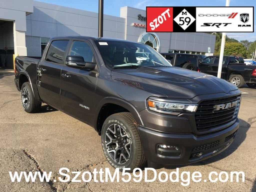 $14,800 off MSRP! $10,366 below Invoice! 2026 Ram 1500 Laramie Granite Crystal Metallic Clearcoat Laramie Level 1 Equipment Group (Rain Sensitive Windshield Wipers, Remote Tailgate Release, Secondary Active Grille Shutters, and Wireless Charging Pad), Quick Order Package 21H Laramie, Sport Appearance Package (Accent Color Premium Power Mirrors, Auto Power-Folding Mirrors, Auto-Dimming Exterior Driver Mirror, Black Interior Accents, Black Painted Exterior Mirrors Caps, Body Color Front Bumper, Body Color Rear Bumper w/Step Pads, Bridgestone Brand Tires, Convex Wide-Angle Exterior Mirror Insert, Exterior Mirrors Courtesy Lamps, Exterior Mirrors w/Heating Element, Exterior Mirrors w/Memory, Exterior Mirrors w/Supplemental Signals, Grille Surround 3 Body Color Tex 2 Black, RAM Grille Badge - Chrome, and Sport Performance Hood), 10 Speakers, 3.55 Rear Axle Ratio, 4-Wheel Disc Brakes, 4G LTE Wi-Fi Hot Spot, ABS brakes, Active Noise Control System, Air Conditioning, Alloy wheels, AM/FM radio: SiriusXM with 360L, Apple CarPlay, Apple CarPlay/Android Auto, Audio memory, Auto High-beam Headlights, Auto-dimming door mirrors, Auto-dimming Rear-View mirror, Automatic temperature control, Brake assist, Bumpers: chrome, Chrome Exterior Mirrors, Compass, Connected Travel & Traffic Services, Connectivity - US/Canada, Delay-off headlights, Disassociated Touchscreen Display, Driver door bin, Driver vanity mirror, Dual front impact airbags, Dual front side impact airbags, Electronic Stability Control, Front anti-roll bar, Front Bucket Seats, Front Center Armrest w/Storage, Front dual zone A/C, Front fog lights, Front reading lights, Front wheel independent suspension, Fully automatic headlights, Garage door transmitter, Global Telematics Box Module (TBM), Google Android Auto, GPS Antenna Input, GPS Navigation, HD Radio, Heated door mirrors, Heated front seats, Heated rear seats, Heated steering wheel, Illuminated entry, Integrated Center Stack Radio, Integrated Voice Command w/Bluetooth, Leather steering wheel, Leather Trimmed Bucket Seats, Low tire pressure warning, Manufacturer's Statement of Origin, Memory seat, MOPAR Front & Rear Rubber Floor Mats, Navigation System, Occupant sensing airbag, Off-Road Information Pages, Outside temperature display, Overhead airbag, Overhead console, Panic alarm, ParkView Rear Back-Up Camera, Passenger door bin, Passenger vanity mirror, Power door mirrors, Power driver seat, Power passenger seat, Power steering, Power windows, Radio data system, Radio: Uconnect 5 Nav w/12.0" Display, Rear anti-roll bar, Rear reading lights, Rear seat center armrest, Rear step bumper, Remote keyless entry, Security system, SiriusXM Radio Service, SiriusXM w/360L, Speed control, Split folding rear seat, Steering wheel mounted audio controls, Tachometer, Telescoping steering wheel, Tilt steering wheel, Traction control, Trip computer, Turn signal indicator mirrors, USB Host Flip, Variably intermittent wipers, Ventilated front seats, Voltmeter, and Wheels: 20" x 9" Premium Paint/Polish.