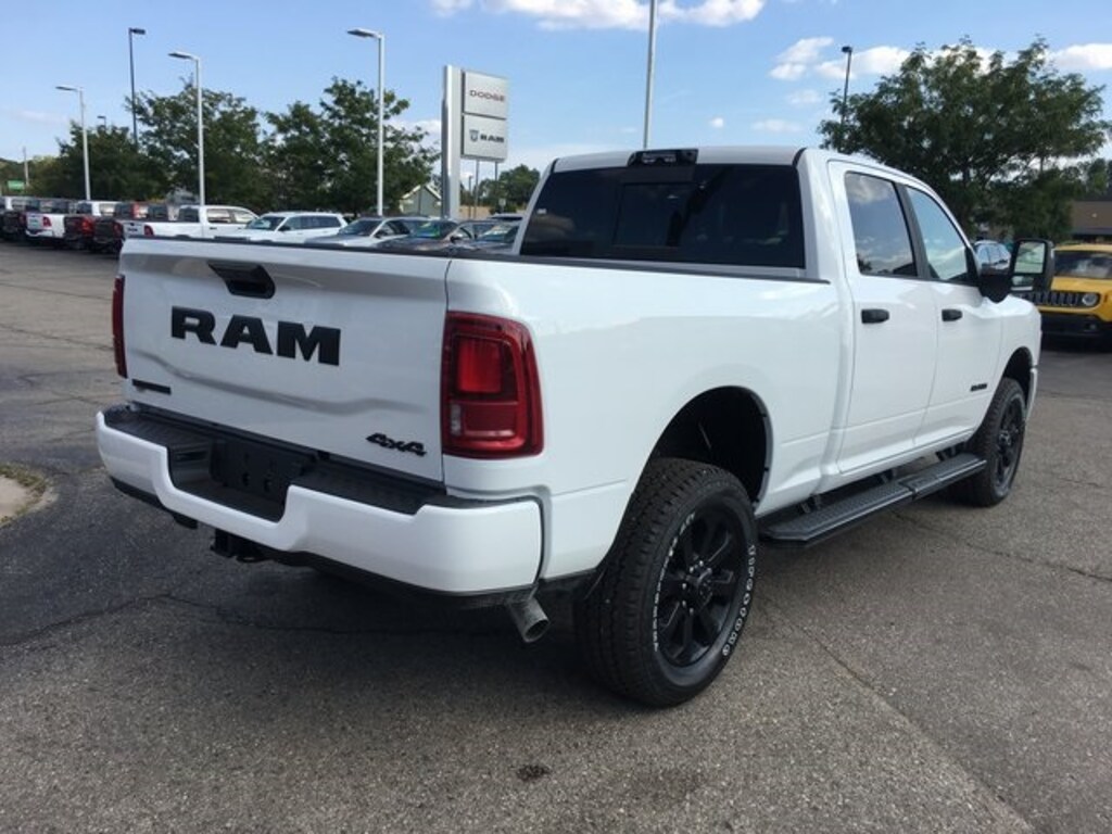 $10,507 off MSRP! $6,810 below Invoice! 2026 Ram 2500 Big Horn Bright White Clearcoat Big Horn Level 2 Plus Equipment Group (115V Auxiliary Front Power Outlet, 115V Auxiliary Rear Power Outlet, 12" Touchscreen Display, 2 Way Rear Headrest Seat, 2nd Row In Floor Storage Bins, 4 Way Front Headrests, 400W Inverter, 4G LTE Wi-Fi Hot Spot, 9 Alpine Speakers w/Subwoofer, Active Lane Management System, Adaptive Steering System, Air Conditioning ATC w/Dual Zone Control, Alexa Built-In, Anti-Spin Differential Rear Axle, Apple CarPlay, Auto High Beam Headlamp Control, Auto Power-Folding Mirrors, Auto-Dimming Rear-View Mirror, Black Exterior Mirrors, Blind Spot & Cross Path Detection, Bucket Seats, Cluster 7.0" TFT Color Display, Connected Travel & Traffic Services, Connectivity - US/Canada, CTR Stop Lamp w/Cargo View Camera, Dampened Tailgate, Disassociated Touchscreen Display, Drowsy Driver Detection, Dual Glove Boxes, Dual Wireless Charging Pad, Emergency Vehicle Alert System (EVAS), Exterior 115V AC Outlet, Exterior Mirrors Courtesy Lamps, Exterior Mirrors w/Heating Element, Exterior Mirrors w/Supplemental Signals, Foam Bottle Insert (Door Trim Panel), Folding Flat Load Floor Storage, Footwell Courtesy Lamp, For Details, Visit DriveUconnect.com, For More Info, Call 800-643-2112, Forward & Reverse Utility Lights, Front Seat Back Map Pockets, Full Length Upgraded Floor Console, Global Telematics Box Module (TBM), Glove Box Lamp, Google Android Auto, GPS Antenna Input, GPS Navigation, HD Radio, Heated Front Seats, Heated Steering Wheel, Integrated Voice Command w/Bluetooth, LED Bed Lighting, LED Tail Lamps, Locking Lower Glove Box, Luxury Steering Wheel, Manual Adjust 4-Way Front Passenger Seat, Media Hub w/2 Charge Only USBs, Mirror Running Lights, MOPAR Deployable Bed Step, MOPAR Spray In Bedliner, Off-Road Info Pages, Power 2-Way Driver Lumbar Adjust, Power Adjust 8-Way Driver Seat, Power Adjust Mirrors, Power Adjustable Pedals, Power Heated Folding Telescopic Mirrors, Power Telescoping Mirrors, Power-Adjustable Convex Aux Mirrors, Premium Cloth Bucket Seats, Radio: Uconnect 5 Nav w/12.0" Display, Rain Sensitive Windshield Wipers, Rear 60/40 Folding Seat, Rear Dome w/On/Off Switch Lamp, Rear Power Sliding Window, Red Tail Lamp Bezels, Remote Start System, Selectable Tire Fill Alert, SiriusXM Radio Service, SiriusXM w/360L, Steering Wheel Mounted Audio Controls, Sun Visors w/Illuminated Vanity Mirrors, Surround View Camera System, Traffic Sign Recognition, Trailer Reverse Guidance, Trailer Tire Pressure Monitoring System, Trailer Tow Pages, and Universal Garage Door Opener), Night Edition (Black Exterior Truck Badging, Black Interior Accents, Black Wheel Center Hub, Body Color Grille-Surround, Gloss Black Nostrils/Mic Black Grille, Painted Front Bumper, Painted Rear Bumper, and Wheels: 20" x 8.0" Black Painted Aluminum), Quick Order Package 2UZ Big Horn, 3.73 Axle Ratio, 4-Wheel Disc Brakes, 40/20/40 Split Bench Seat, 6 Speakers, ABS brakes, Air Conditioning, Alloy wheels, AM/FM radio: SiriusXM, Apple CarPlay/Android Auto, Brake assist, Bumpers: chrome, Center Hub, Clearance Lamps, Cloth 40/20/40 Bench Seat, Compass, Delay-off headlights, Driver door bin, Dual Alternators Rated At 400 Amps, Dual front impact airbags, Dual front side impact airbags, Electronic Stability Control, Front anti-roll Customers must reside in the CJDR GLBC Region to qualify for special Pricing. Must be a GPricing includes FCA EP discount New vehicle pricing includes FCA EP discount and all incentives. Tax, Title, doc fee, and License not included in vehicle prices shown and must be paid by the purchaser. While great effort is made to ensure the accuracy of the information on this site, errors do occur so please verify information with a customer service rep. This is easily done by calling us or by visiting us at the dealership.$1000 - 2026 National Bonus Cash . Exp. 11/03/2025 $2000 - 2026 National Overaged Select Inventory Bonus Cash . Exp. 11/03/2025