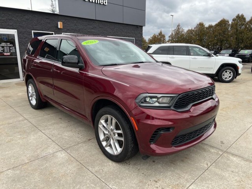 *NO NEED TO LEAVE YOUR HOME OR BUSINESS!! SZOTT DELIVERS!!!. Recent Arrival! CARFAX One-Owner. Clean CARFAX. 2024 Octane Red Pearlcoat Dodge Certified. AWD Durango GT 8-Speed Automatic With some available options like Quick Order Package 2BD GT, 3.45 Rear Axle Ratio, 3rd row seats: split-bench, 4-Wheel Disc Brakes, 6 Speakers, ABS brakes, Air Conditioning, Alloy wheels, AM/FM radio: SiriusXM, Apple CarPlay, Apple CarPlay/Android Auto, Auto-dimming Rear-View mirror, Automatic temperature control, Brake assist, Bumpers: body-color, Cloth Bucket Seats w/Shift Insert, Compass, Delay-off headlights, Driver door bin, Driver vanity mirror, Dual front impact airbags, Dual front side impact airbags, Electronic Stability Control, Exterior Mirrors w/Heating Element, Four wheel independent suspension, Front anti-roll bar, Front Bucket Seats, Front Center Armrest w/Storage, Front dual zone A/C, Front License Plate Bracket, Front reading lights, Fully automatic headlights, Garage door transmitter, Gloss Black Exterior Mirrors, Google Android Auto, GPS Antenna Input, Heated door mirrors, Heated front seats, Heated steering wheel, Illuminated entry, Integrated Center Stack Radio, Integrated Voice Command w/Bluetooth, Knee airbag, Leather steering wheel, Low tire pressure warning, Occupant sensing airbag, Outside temperature display, Overhead airbag, Overhead console, Panic alarm, ParkView Rear Back-Up Camera, Passenger door bin, Passenger vanity mirror, Power door mirrors, Power driver seat, Power Liftgate, Power steering, Power windows, Radio data system, Radio: Uconnect 4 w/8.4" Display, Rear air conditioning, Rear anti-roll bar, Rear reading lights, Rear seat center armrest, Rear window defroster, Rear window wiper, Red Accent Stitching, Remote keyless entry, Speed control, Speed-sensing steering, Speed-Sensitive Wipers, Split folding rear seat, Spoiler, Sport steering wheel, Steering wheel mounted audio controls, Tachometer, Telescoping steering wheel, Tilt steering wheel, Traction control, Trip computer, USB Host Flip, Variably intermittent wipers, Voltmeter, and Wheels: 20" x 8.0" Fine Silver.