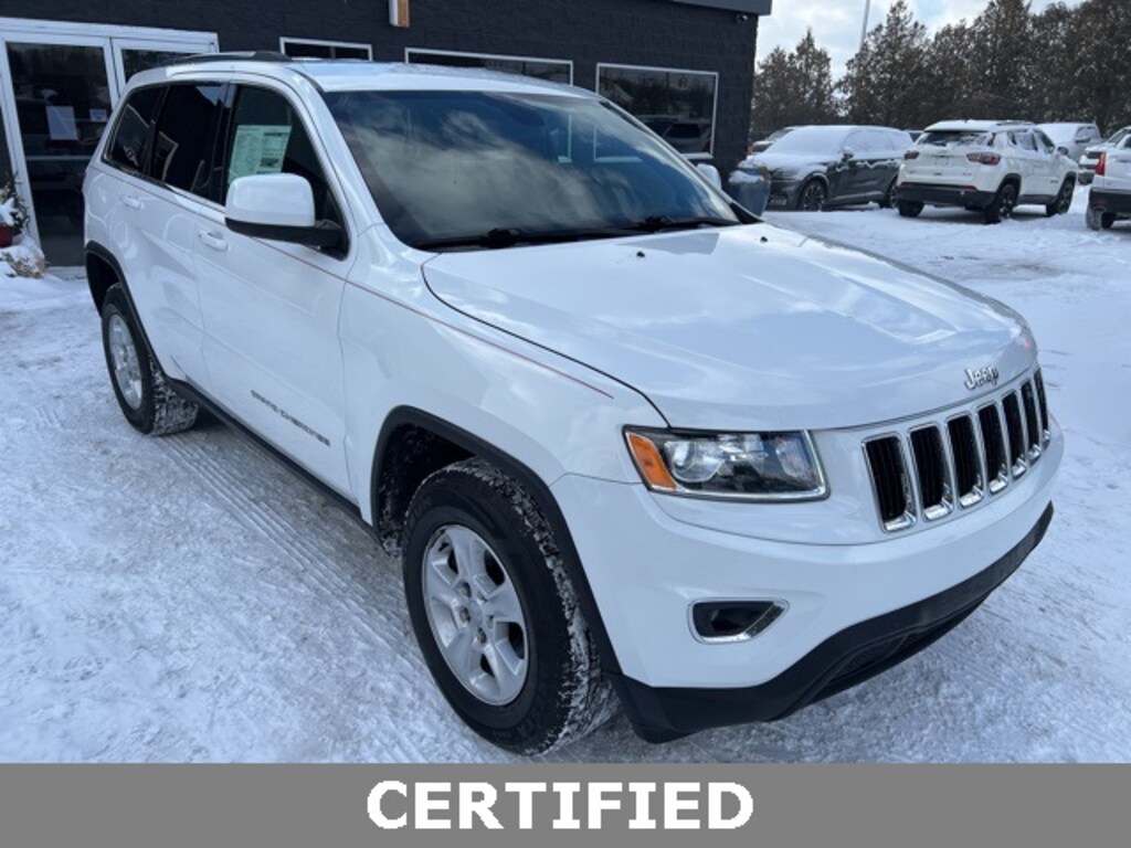 *NO NEED TO LEAVE YOUR HOME OR BUSINESS!! SZOTT DELIVERS!!!. Recent Arrival! Odometer is 20860 miles below market average! 2016 Bright White Clearcoat Jeep Certified. 4WD Grand Cherokee Laredo 8-Speed Automatic With some available options like Quick Order Package 23E (Bright Side Roof Rails, Power 4-Way Driver Lumbar Adjust, and Power 8-Way Driver/Manual Passenger Seat), 17" x 8.0" Aluminum Wheels, 3.45 Rear Axle Ratio, 4-Wheel Disc Brakes, 6 Speakers, ABS brakes, Air Conditioning, Alloy wheels, AM/FM radio, Anti-whiplash front head restraints, Automatic temperature control, Brake assist, Bumpers: body-color, Cloth Low-Back Bucket Seats, Compass, Delay-off headlights, Driver door bin, Driver vanity mirror, Dual front impact airbags, Dual front side impact airbags, Electronic Stability Control, For Details Visit DriveUconnect.com, Four wheel independent suspension, Front anti-roll bar, Front Bucket Seats, Front Center Armrest w/Storage, Front dual zone A/C, Front fog lights, Front reading lights, Fully automatic headlights, Heated door mirrors, Illuminated entry, Knee airbag, Leather Shift Knob, Low tire pressure warning, Normal Duty Suspension, Occupant sensing airbag, Outside temperature display, Overhead airbag, Overhead console, Panic alarm, Passenger door bin, Passenger vanity mirror, Power door mirrors, Power steering, Power windows, Radio data system, Radio: Uconnect 5.0, Rear anti-roll bar, Rear reading lights, Rear seat center armrest, Rear window defroster, Rear window wiper, Remote keyless entry, Speed control, Speed-Sensitive Wipers, Split folding rear seat, Spoiler, Steering wheel mounted audio controls, Tachometer, Telescoping steering wheel, Tilt steering wheel, Traction control, Trip computer, and Variably intermittent wiperS.