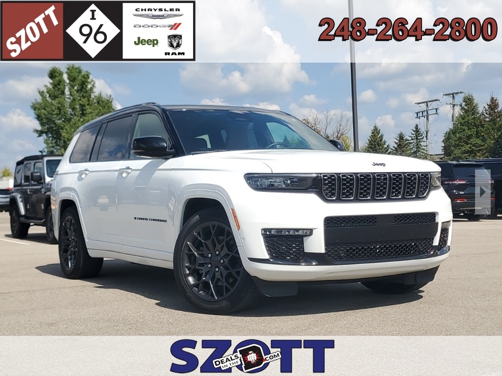 *Sunroof/Moonroof*, *GPS NAVIGATION w/BACK UP CAMERA*, *REMOTE STARTER*, *LEATHER SEATS*, *BLUETOOTH, HANDS-FREE*, CLEAN CARFAX, *NON SMOKER*, PRICE N/A WITH OUTSIDE FINANCING, NIGHT PKG, HEATED/COOLED SEATS. Odometer is 6875 miles below market average! Bright White Clearcoat 2023 Jeep Grand Cherokee L Summit 4WD 8-Speed Automatic HEMI 5.7L V8 Multi Displacement VVT
